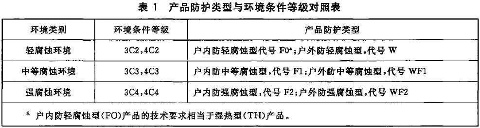 產(chǎn)品的防護(hù)類型按其對(duì)不同嚴(yán)酷程度腐蝕環(huán)境的適應(yīng)性劃分為三種,即: