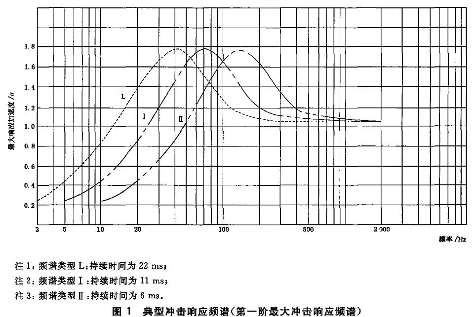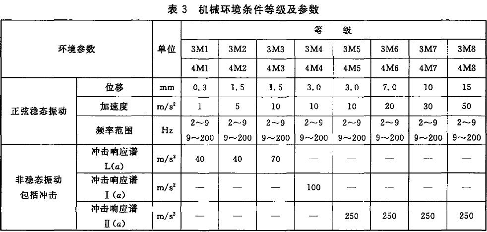 3.9 機(jī)械環(huán)境條件各等級(jí)的環(huán)境參數(shù)值間表3 。典型沖擊響應(yīng)頻譜見圖1.